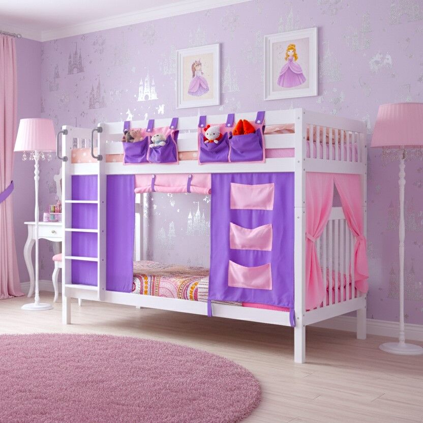 มาพร้อมชุดผ้าม่านตกแต่งเตียง + กระเป๋าแขวน (สีชมพู/ม่วง)