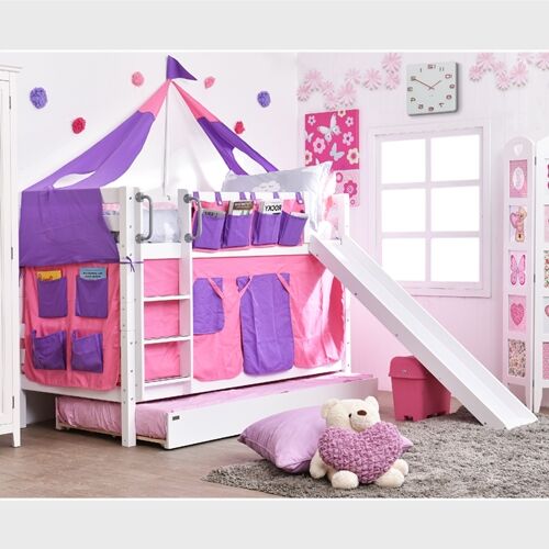 ชุดเตียงนอนสไลเดอร์สุดหรรษา ให้เป็นทั้งที่นอนและที่นอนในชุดเดียว(สไลเดอร์ถอดออกได้ตลอด) นอนได้จนโต ช่วยให้พื้นที่ในห้องของคุณกว้างยิ่งขึ้น เหมาะสำหรับเด็กๆที่เริ่มแยกนอน เตียงไม่สูงปีนขึ้น-ลงได้ง่าย ปลอดภัยต่อเด็ก ผลิตจากไม้จริงคงทนแข็งแรงและด้วยขนาดมาตรฐานเตียงเดี่ยว (3.5ฟุต) เตียงสองชั้นรุ่นนี้สามารถถอดแยกออกเป็นเตียงเดี่ยวได้อีกด้วย