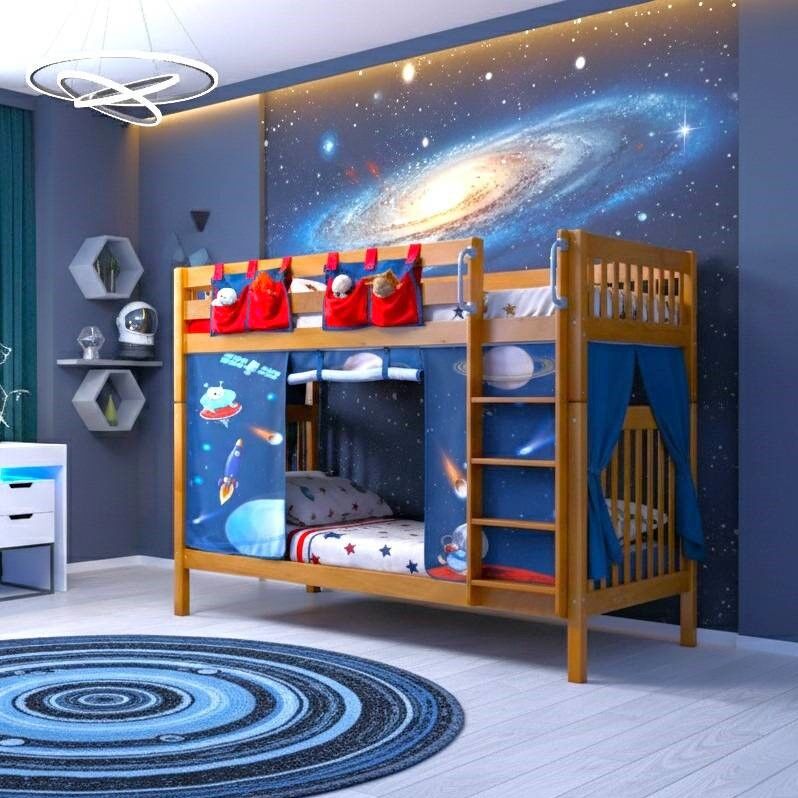 มาพร้อมชุดผ้าม่านตกแต่งเตียง + กระเป๋าแขวน (ลายอวกาศ)