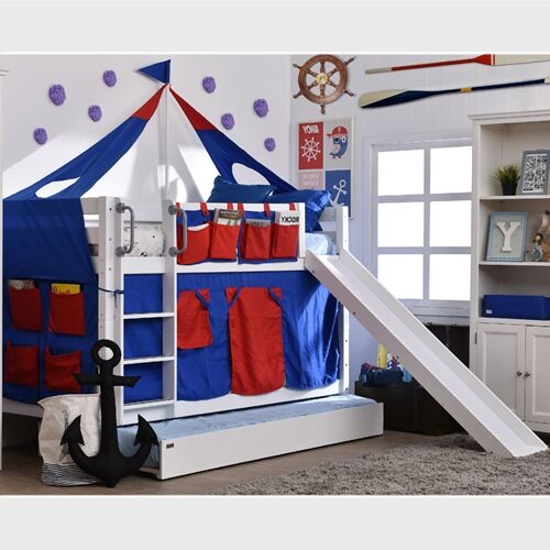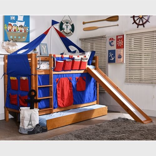 ชุดเตียงนอนสไลเดอร์สุดหรรษา ให้เป็นทั้งที่นอนและที่นอนในชุดเดียว(สไลเดอร์ถอดออกได้ตลอด) นอนได้จนโต ช่วยให้พื้นที่ในห้องของคุณกว้างยิ่งขึ้น เหมาะสำหรับเด็กๆที่เริ่มแยกนอน เตียงไม่สูงปีนขึ้น-ลงได้ง่าย ปลอดภัยต่อเด็ก ผลิตจากไม้จริงคงทนแข็งแรงและด้วยขนาดมาตรฐานเตียงเดี่ยว (3.5ฟุต) เตียงสองชั้นรุ่นนี้สามารถถอดแยกออกเป็นเตียงเดี่ยวได้อีกด้วย