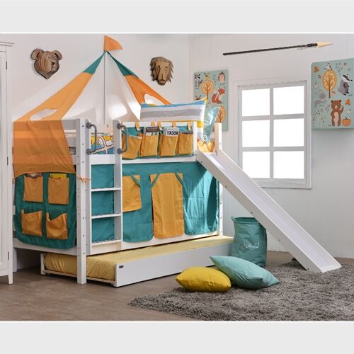 ชุดเตียงนอนสไลเดอร์สุดหรรษา ให้เป็นทั้งที่นอนและที่นอนในชุดเดียว(สไลเดอร์ถอดออกได้ตลอด) นอนได้จนโต ช่วยให้พื้นที่ในห้องของคุณกว้างยิ่งขึ้น เหมาะสำหรับเด็กๆที่เริ่มแยกนอน เตียงไม่สูงปีนขึ้น-ลงได้ง่าย ปลอดภัยต่อเด็ก ผลิตจากไม้จริงคงทนแข็งแรงและด้วยขนาดมาตรฐานเตียงเดี่ยว (3.5ฟุต) เตียงสองชั้นรุ่นนี้สามารถถอดแยกออกเป็นเตียงเดี่ยวได้อีกด้วย
