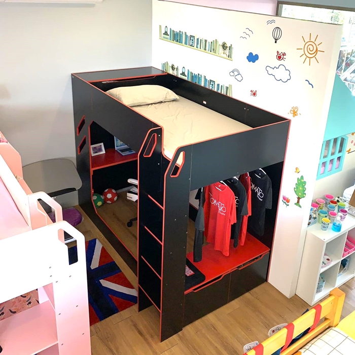 การออกแบบเน้นเท่ดุดัน ทันสมัย พร้อมฟังก์ชั่นที่ครบครัน นั่ง นอน เล่น เก็บของในเตียงเดียว สินค้าถึงมือลูกค้า ตกแต่งเพิ่มบรรยากาศในห้องนอนของลูกๆให้สวยงามน่านอนยิ่งขึ้นครับ
