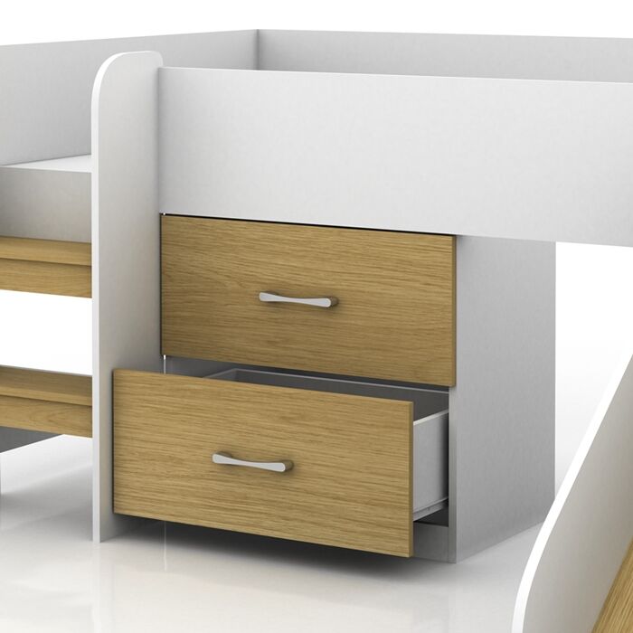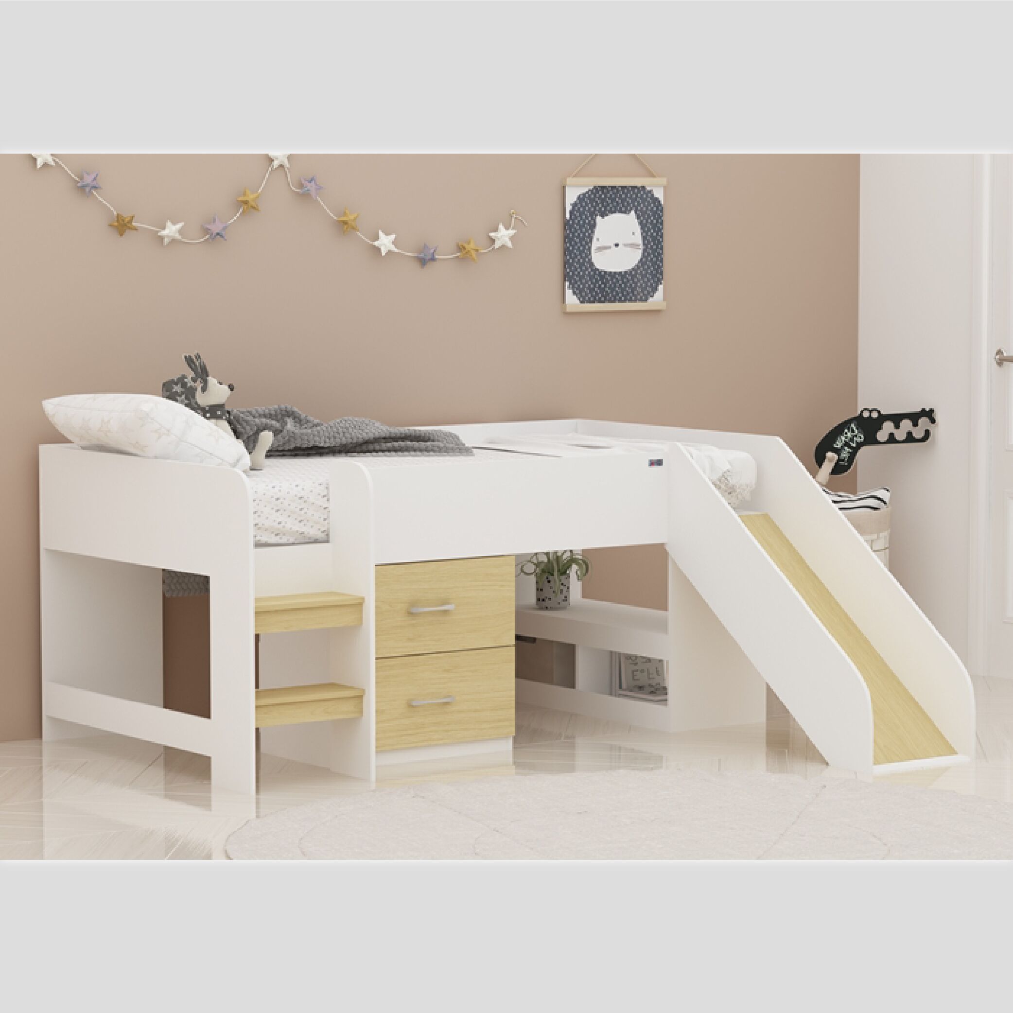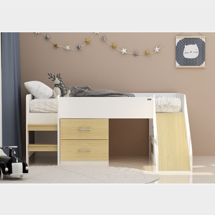 เตียงที่มีการออกแบบให้เหมาะกับการใช้งานของเด็ก ดีไซน์น่ารัก สบายตา ความปลอดภัยเตียงที่ไม่สูงจนเกินไป มีที่กันตก และฟังชั่นลิ้นชักและช่องเก็บของมากมายหลายจุดเพื่อใช้พื้นที่ให้เกิดประโยชน์มากที่สุด